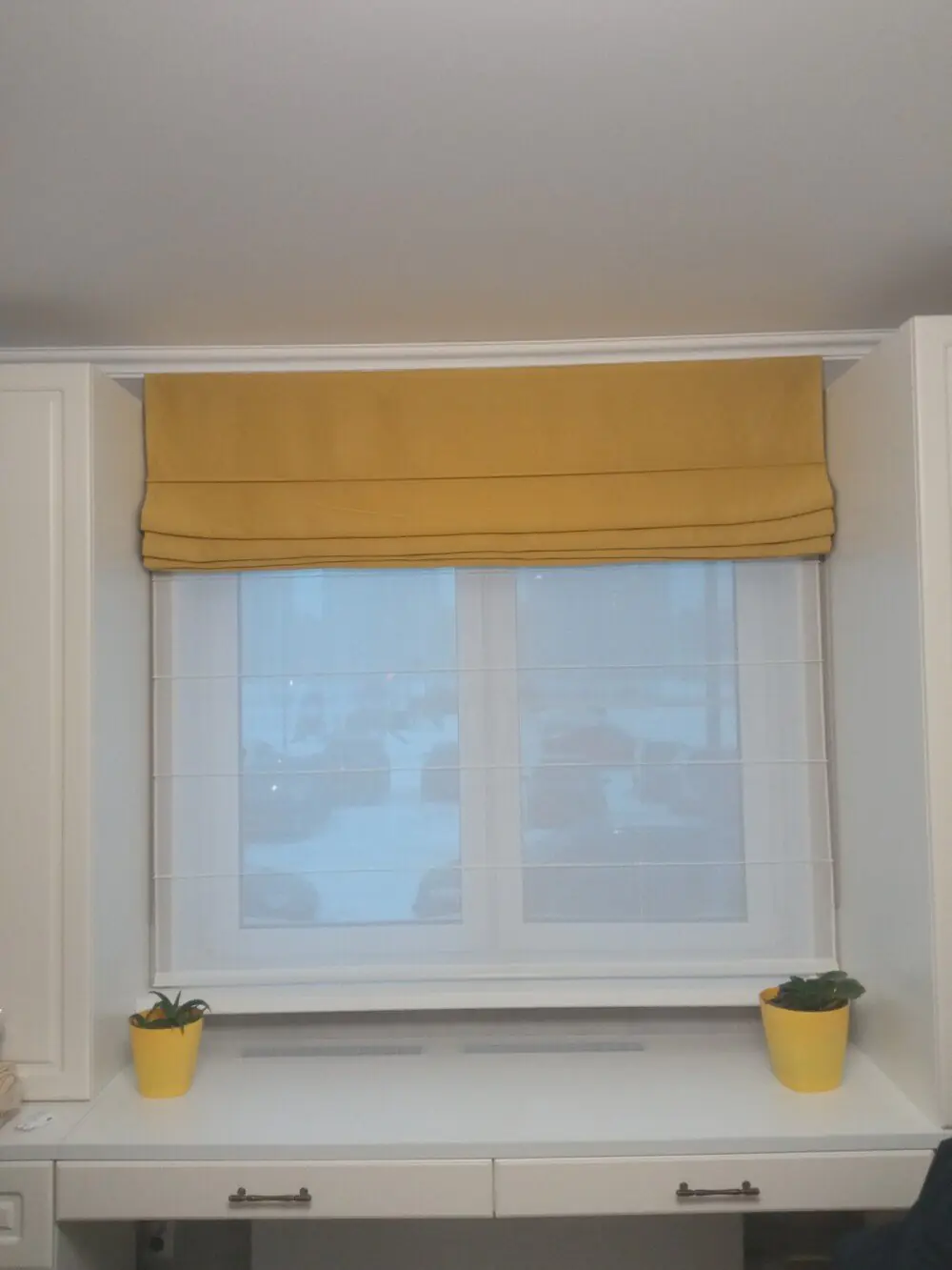 - Энергоэффективность. Римская штора тандем помогает удерживать прохладу летом и тепло зимой, улучшая микроклимат.